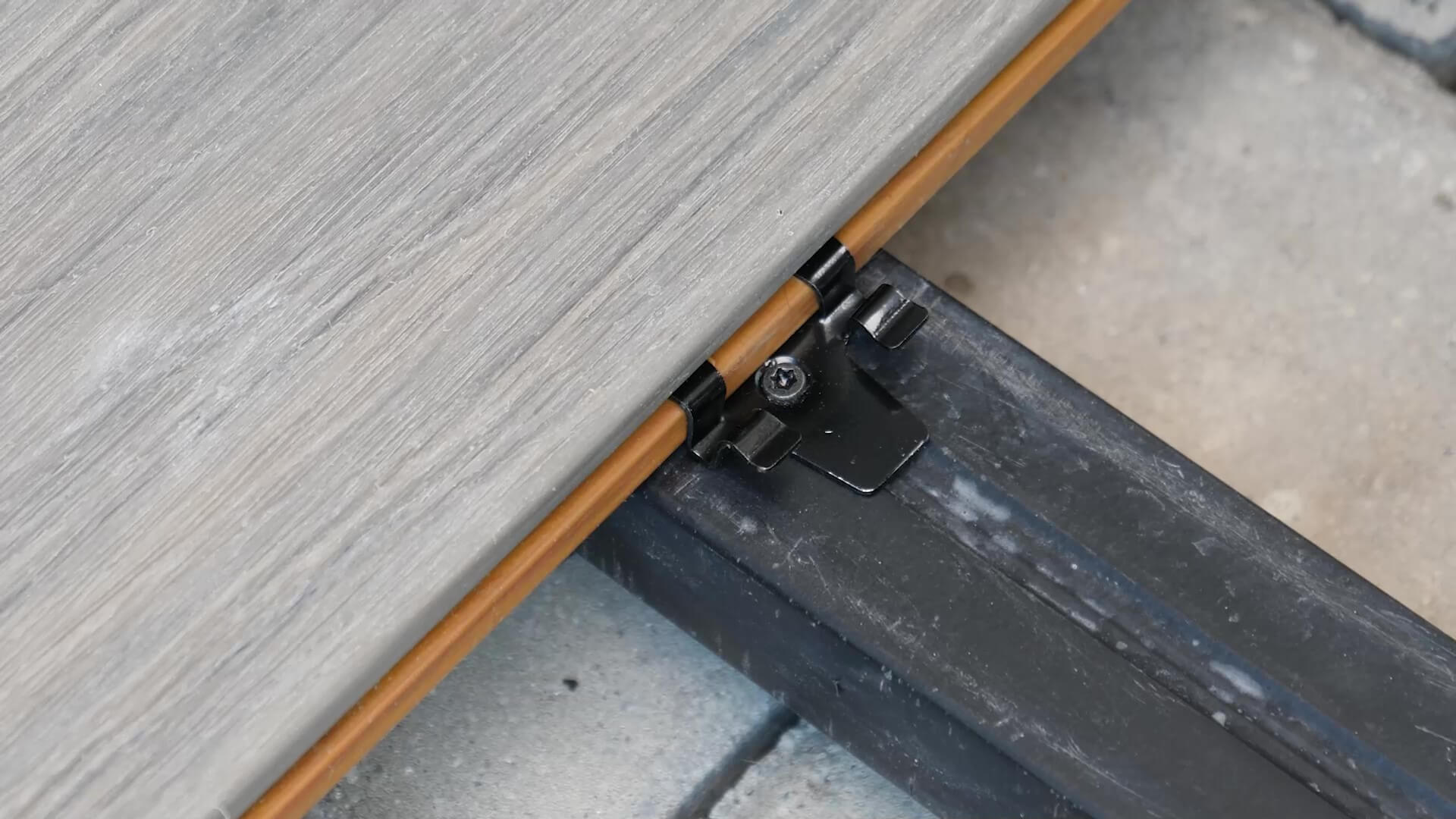 Klips startowy przykręca się do brzegu legara, po czym wsuwa się w ten klips deskę tarasową tak, aby dokładnie przylegała. W specjalne szczeliny wkłada się klipsy montażowe, które połączą deski, ale pozostaną niewidoczne. Do legarów przykręcane są wyłącznie klipsy.