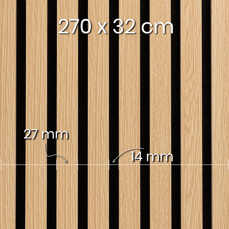 Akustyczne lamele na czarnym, mocnym filcu są wytrzymałe, ale na tyle elastyczne, aby można było je swobodnie dopasować do przestrzeni i bezproblemowo zamontować. Mają wymiary 270 x 32 cm. Możliwości montażu jest wiele także ze względu na możliwość przycięcia lameli.
