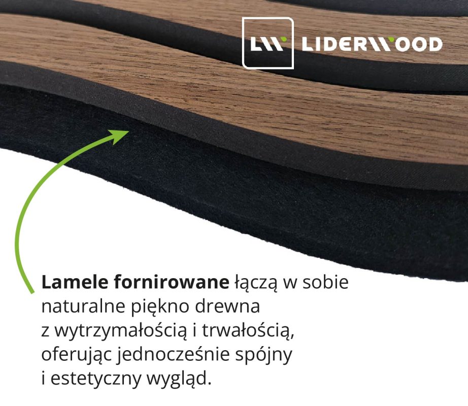Lamele z serii S-line i V-line są fornirowane. Dzięki cienkiej wierzchniej warstwie, zwanej fornirem, struktura lameli doskonale imituje prawdziwe drewno. Lamele zyskują estetyczny wygląd, jednocześnie zachowując zalety materiału bazowego, takiego jak MDF.