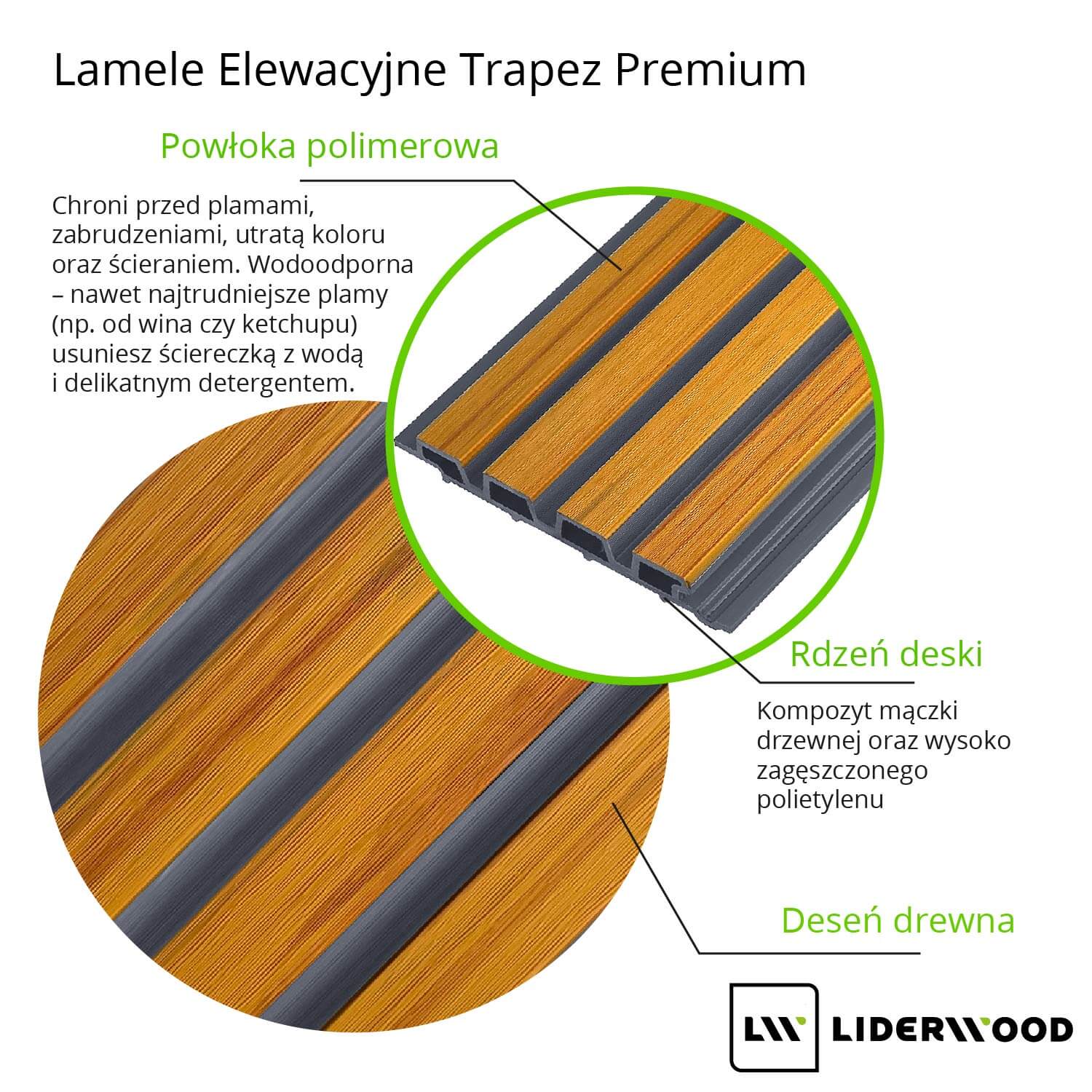 Deska Elewacyjna Lamelowa Premium Trapez Dąb Bursztynowy / Szary