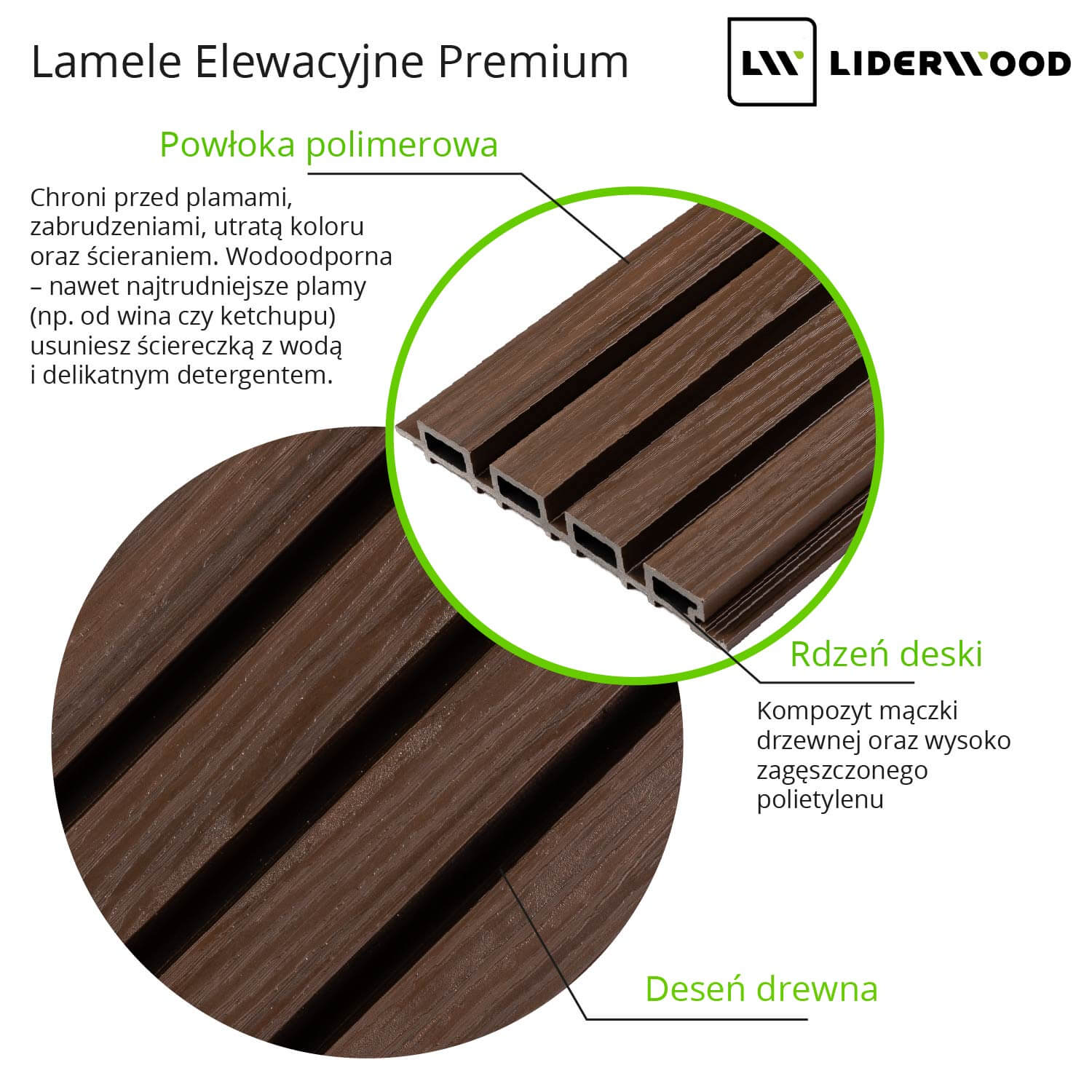 Specjalna konstrukcja paneli kompozytowych lamelowych gwarantuje ich sztywność i trwałość, a ich montaż na pióro-wpust jest szybki, estetyczny i precyzyjny, co gwarantuje efektowny wygląd od pierwszego dnia.