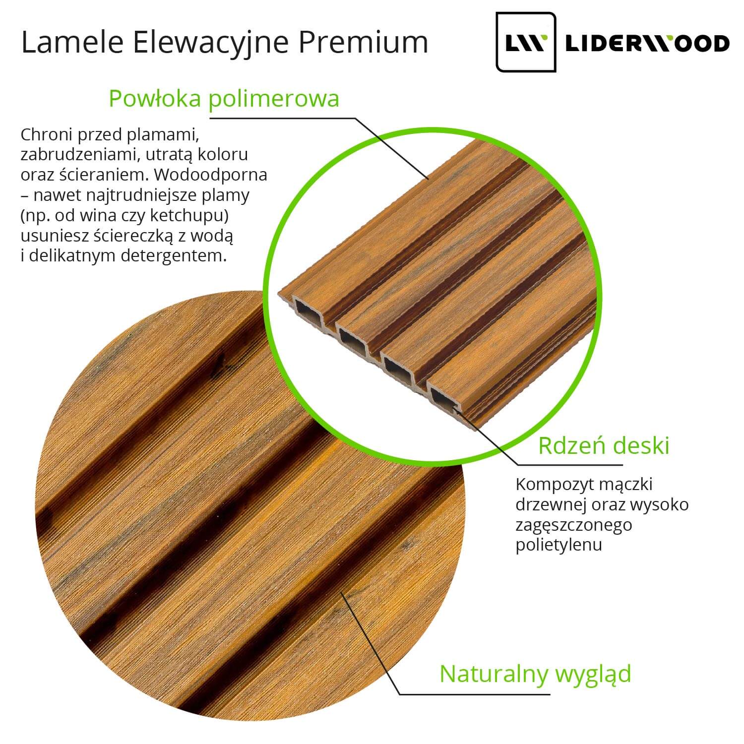 Specjalna konstrukcja paneli kompozytowych lamelowych gwarantuje ich sztywność i trwałość, a ich montaż na pióro-wpust jest szybki, estetyczny i precyzyjny, co gwarantuje efektowny wygląd od pierwszego dnia.