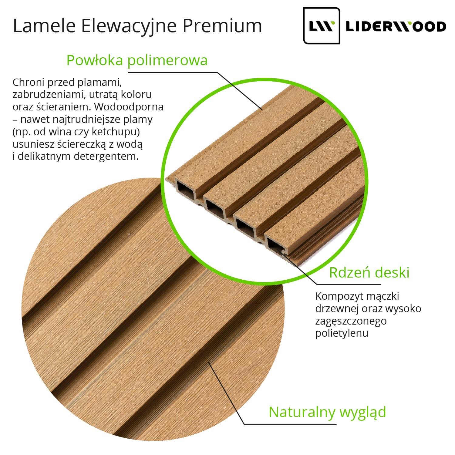 ✅ Wygląd drewna – elegancki efekt wizualny bez konieczności konserwacji