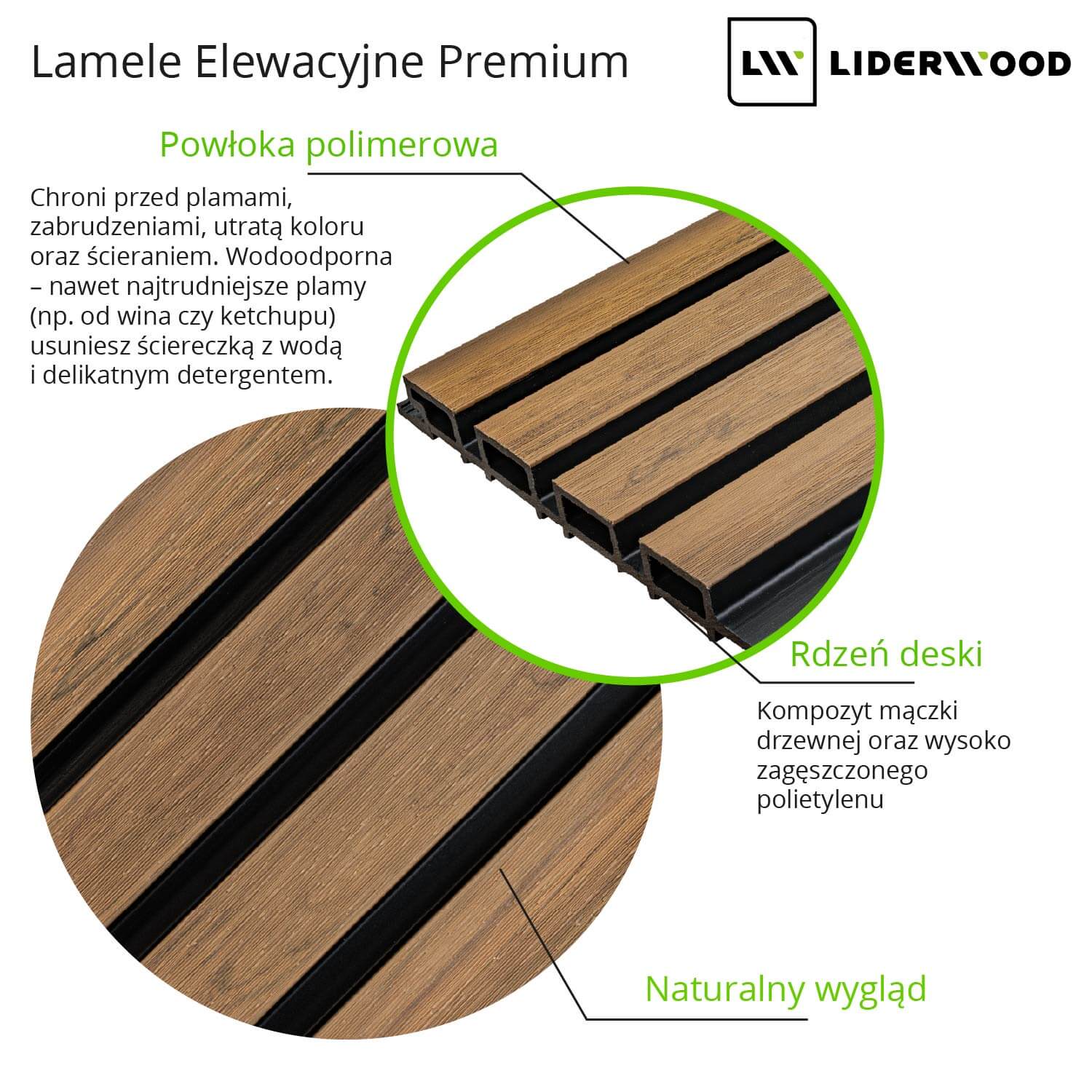 Specjalna konstrukcja paneli kompozytowych lamelowych gwarantuje ich sztywność i trwałość, a ich montaż na pióro-wpust jest szybki, estetyczny i precyzyjny, co gwarantuje efektowny wygląd od pierwszego dnia.