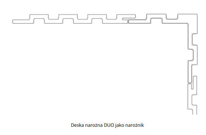 Deskę można zastosować jako narożną i po jej zamocowaniu kontynuować montaż desek