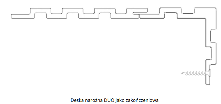 Deska narożna DUO jest obustronnie zakończona piórkami. Montujemy ją do legarów za pomocą