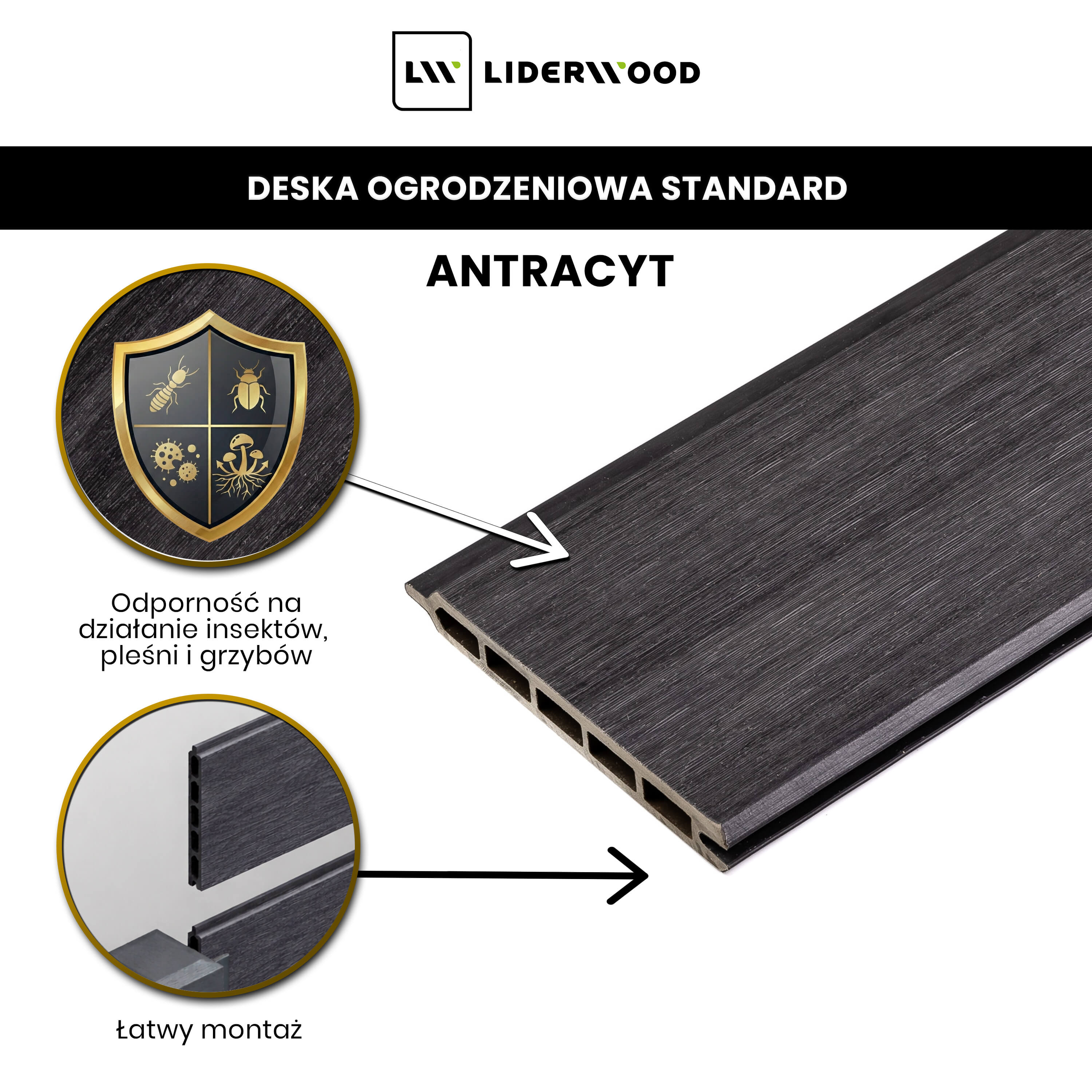Deska Ogrodzeniowa Standard Antracyt 162 x 20 mm – dł. 1,8 m