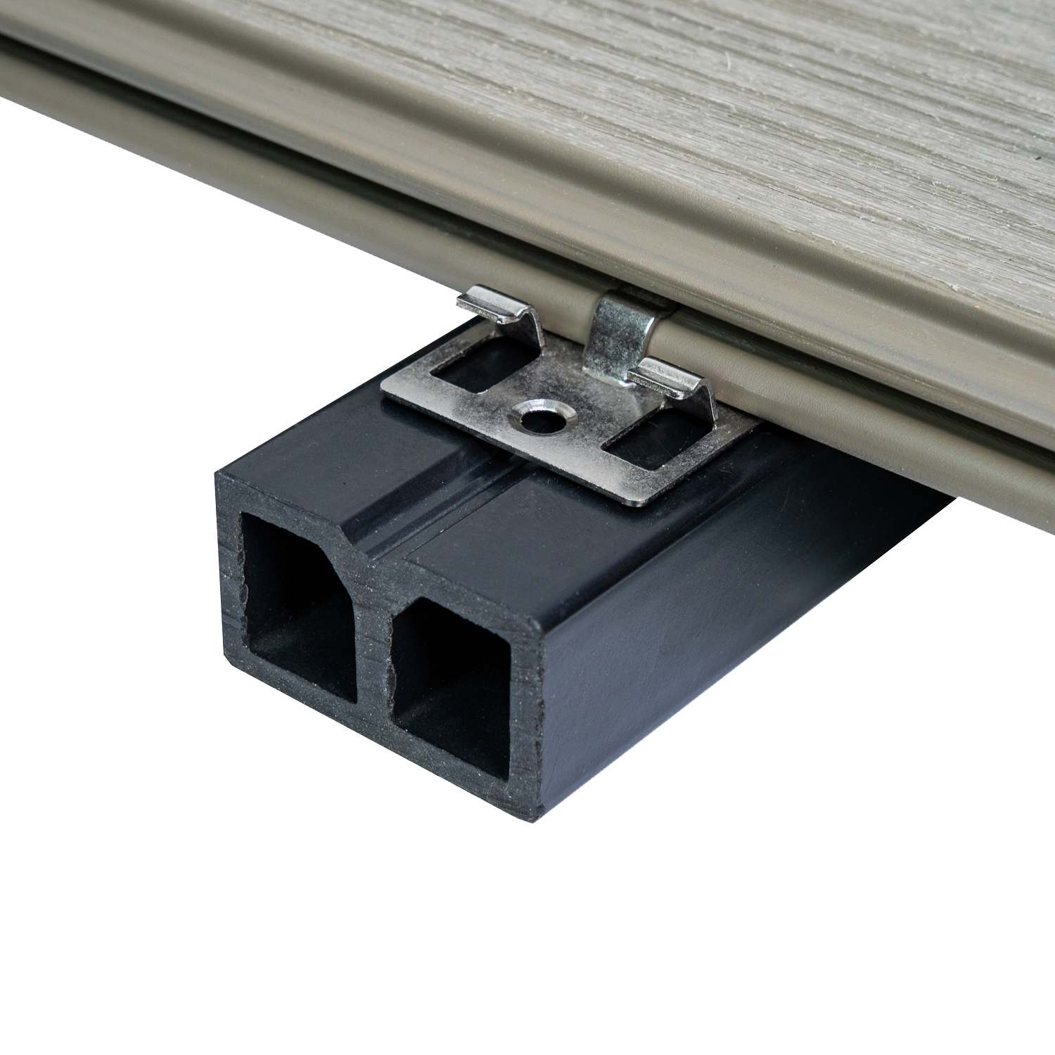 Deski tarasowe Premium Bezszwowe montuje się przy użyciu podłużnych legarów nośnych oraz klipsów montażowych, które zapewniają szybkie, trwałe i estetyczne łączenie elementów.