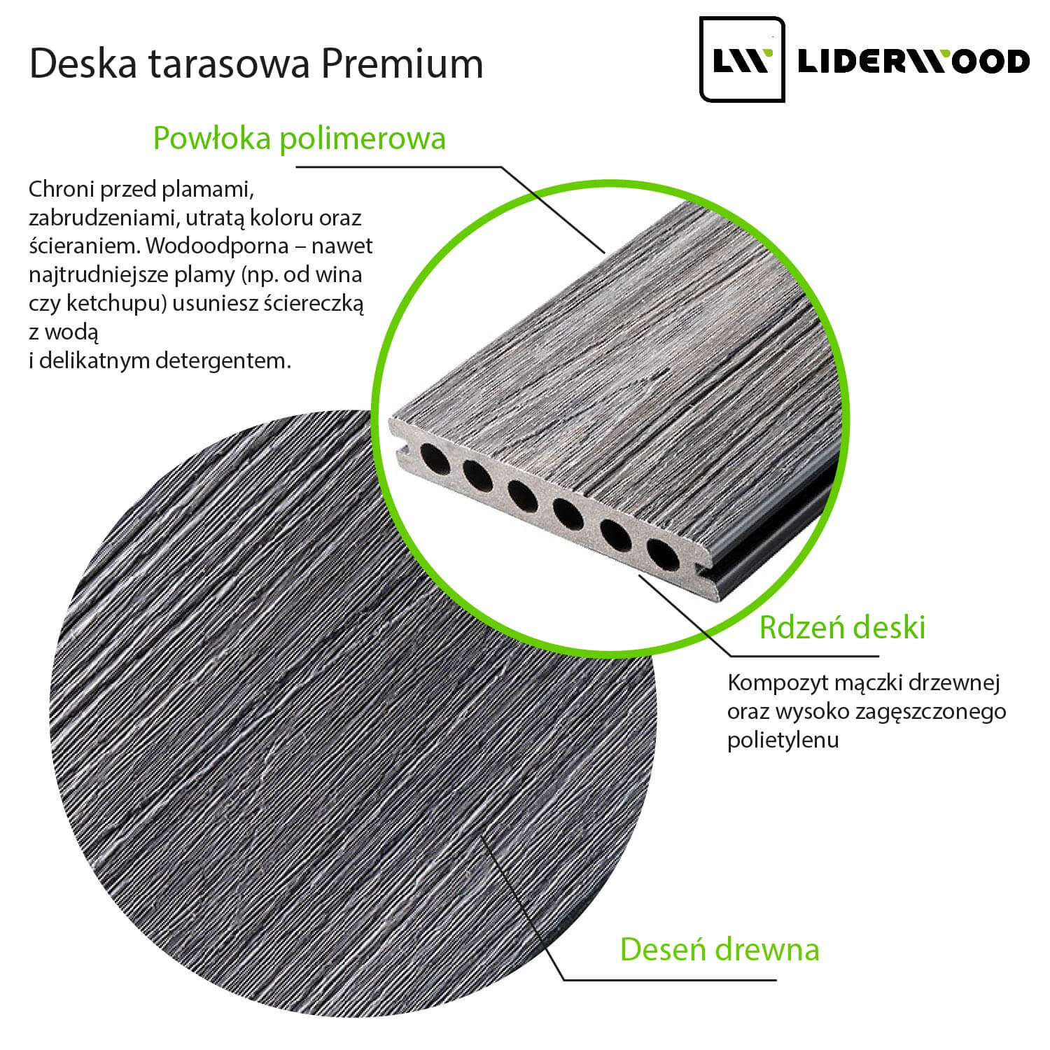 | Materiał | Kompozyt WPC |