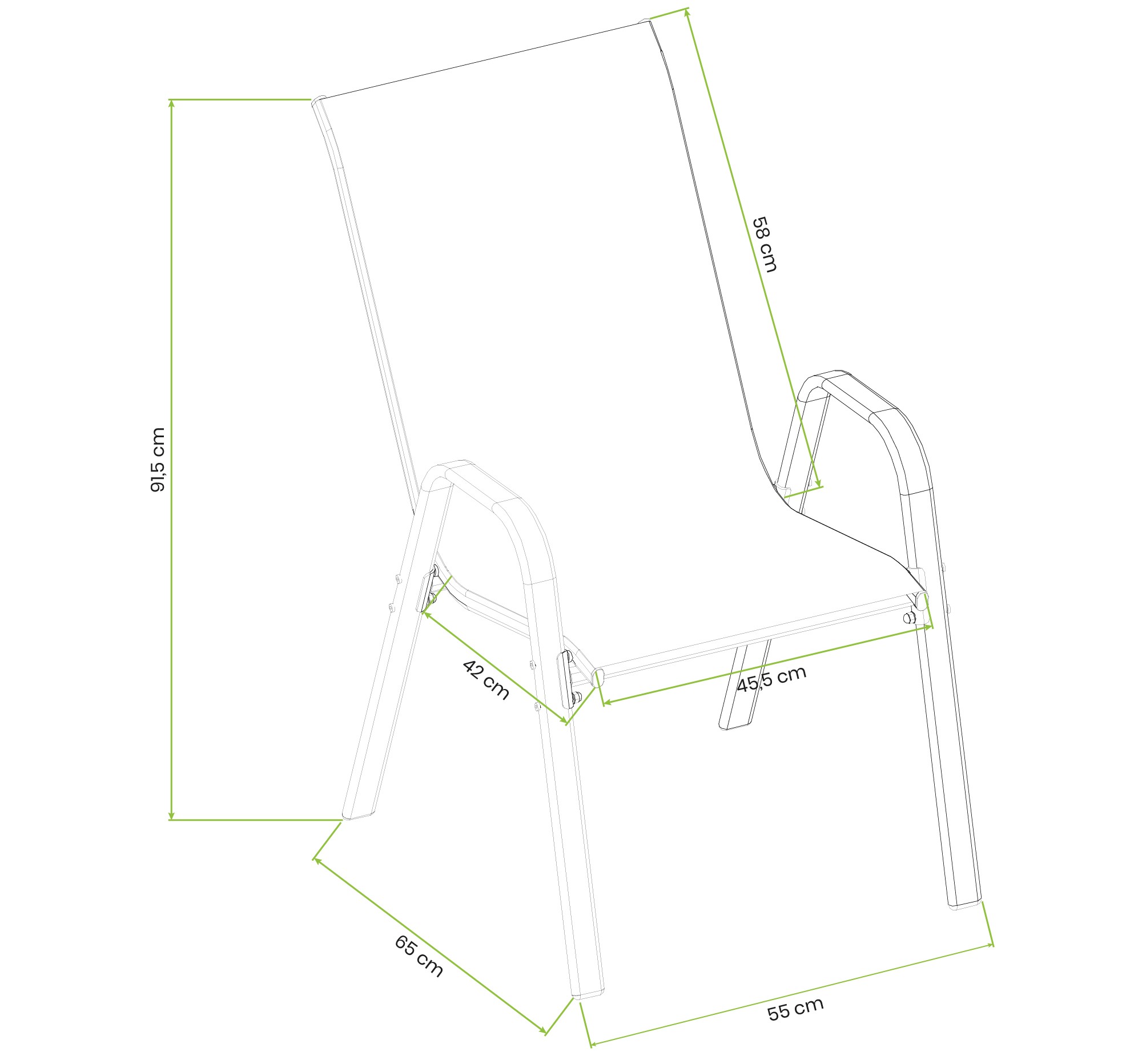 - Wytrzymały materiał – solidny metalowy stelaż i materiałowe siedzisko zapewniają odporność na zmienne warunki atmosferyczne