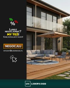 Zestawienie kontrastowych kolorów dodaje przestrzeni charakteru, jednocześnie podkreślając jej nowoczesny styl. Zarówno deski, jak i lamele charakteryzują się trwałością oraz odpornością na zmienne warunki atmosferyczne, co sprawia, że rozwiązanie jest nie tylko estetyczne, ale i praktyczne.