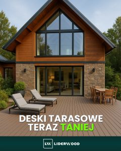 Zestawienie kontrastowych kolorów dodaje przestrzeni charakteru, jednocześnie podkreślając jej nowoczesny styl. Zarówno deski, jak i lamele charakteryzują się trwałością oraz odpornością na zmienne warunki atmosferyczne, co sprawia, że rozwiązanie jest nie tylko estetyczne, ale i praktyczne.