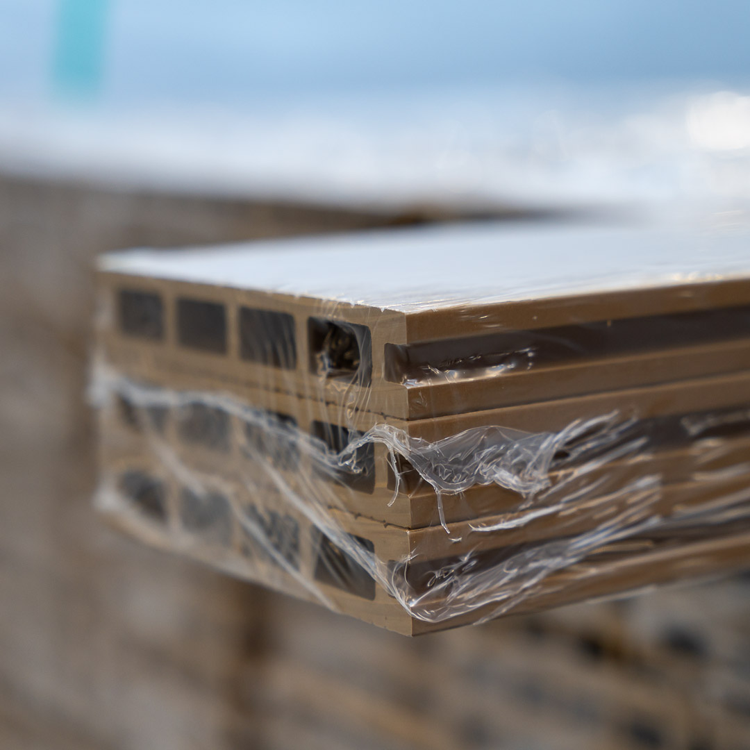 Deski są dodatkowo starannie zapakowane fabrycznie w warstwę folii ochronnej, która zabezpiecza je przed wilgocią, zabrudzeniami oraz drobnymi uszkodzeniami mechanicznymi podczas transportu. Dzięki temu masz pewność, że zamówiony materiał dotrze do Ciebie w idealnym stanie, gotowy do montażu.