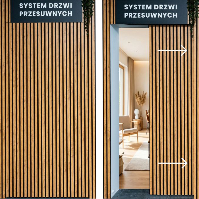 ✅ Oszczędność miejsca – idealne rozwiązanie tam, gdzie klasyczne skrzydło drzwiowe zabiera zbyt dużo przestrzeni przy otwieraniu