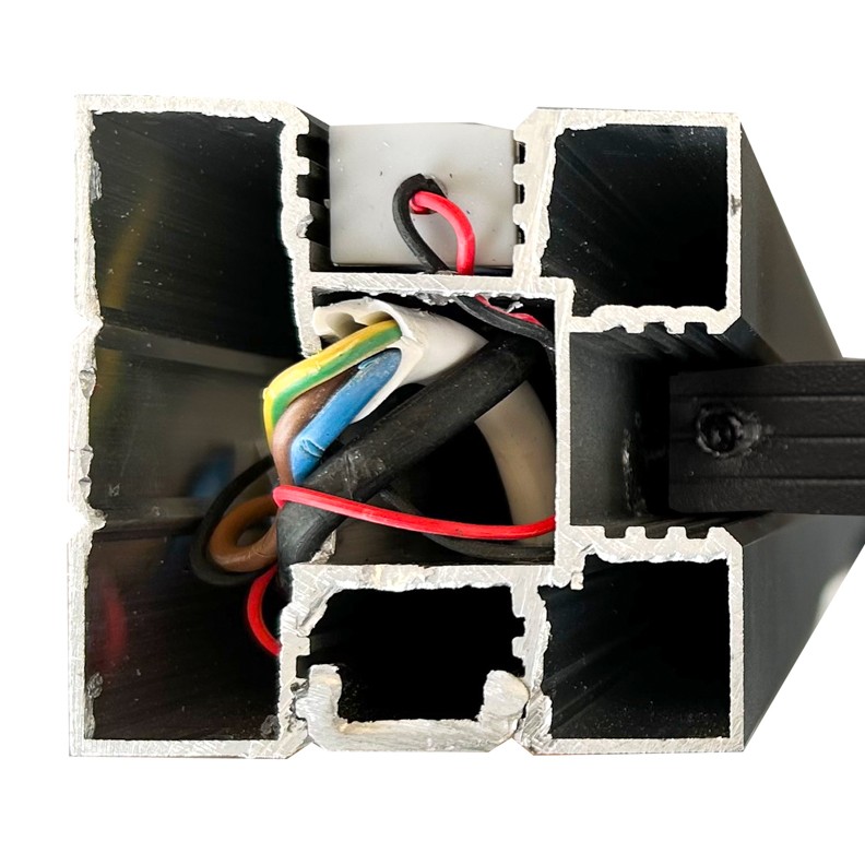 - Umieść lampę w profilu słupka – wsuń lampę od góry w dedykowany otwór w słupku (przeznaczony do montażu lamp lub listew).