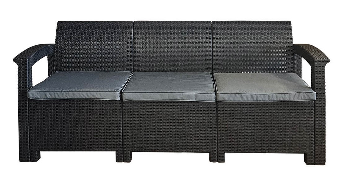 Zestaw mebli Aura to idealne rozwiązanie dla tych, którzy cenią sobie elegancję i funkcjonalność w swoim ogrodzie, na tarasie czy na balkonie. W skład zestawu wchodzą 2 wygodne fotele ogrodowe, przestronna sofa trzyosobowa oraz funkcjonalny stolik – wszystko wykonane z wytrzymałego tworzywa w kolorze antracytowym. Technorattan gwarantuje dużą odporność na zmienne warunki atmosferyczne. Ponadto, w przeciwieństwie do tradycyjnego rattanu, technorattan jest bardziej odporny na uszkodzenia mechaniczne. Meble charakteryzują się nie tylko trwałością, ale również łatwością w konserwacji. Technorattan jest łatwy do utrzymania w czystości i nie wymaga specjalnych środków do impregnacji czy konserwacji, co sprawia, że jest praktycznym wyborem dla każdego ogrodu. Co więcej, zestaw ten zachwyca swoim naturalnym wyglądem, doskonale imitującym rattan. Idealny do rodzinnych spotkań, relaksu na świeżym powietrzu czy przyjęć w ogrodzie, ten zestaw mebli ogrodowych łączy w sobie elegancję, wygodę i trwałość. Jego nowoczesny design i uniwersalny kolor idealnie komponują się zarówno z nowoczesnymi, jak i bardziej tradycyjnymi aranżacjami ogrodów, tarasów czy balkonów. Meble wymagają samodzielnego montażu.