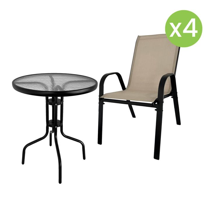 Zestaw Ogrodowy Terra Beżowy – 4 krzesła + stolik