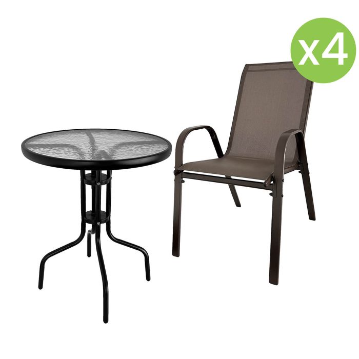 Zestaw Ogrodowy Terra Brązowy – 4 krzesła + stolik