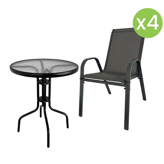 Zestaw ogrodowy Terra 4+1 to praktyczne i stylowe rozwiązanie do ogrodu, na taras lub balkon. W komplecie znajdują się 4 wygodne krzesła oraz stolik ze szklanym blatem, które razem tworzą komfortową strefę relaksu i spotkań.